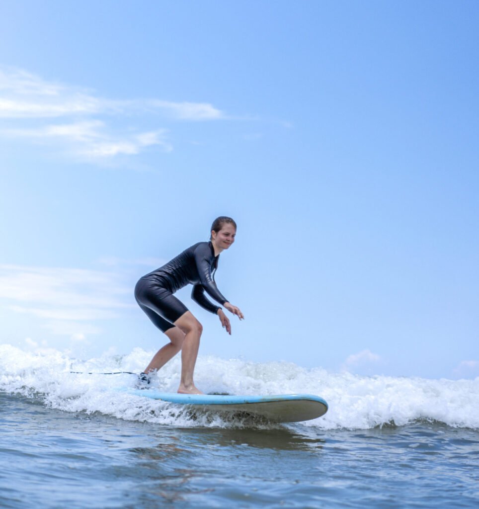 We teach the foundations: ocean awareness, board handling, paddling, pop-up techniques, and how to catch your first waves with control – not luck!